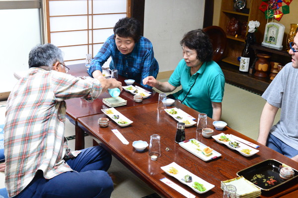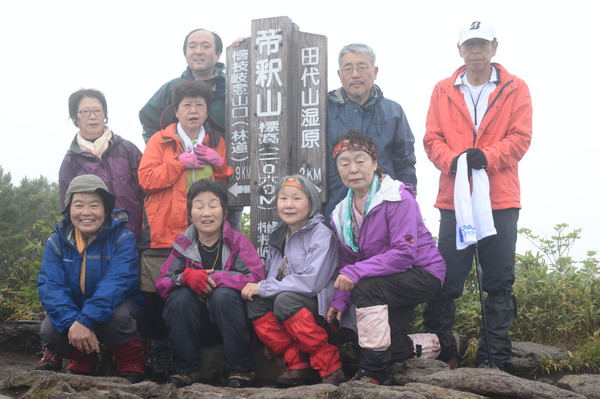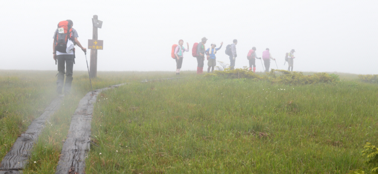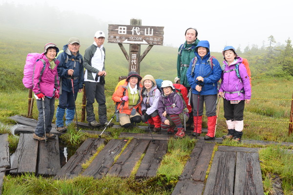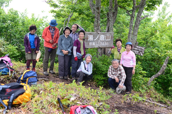 期日:2016年6月16日(木)〜17日(金) 第 一 日 天候:曇り一時雨 コース:東武大宮7:14=春日部7:44=会津高原尾瀬口11:00=湯の花温泉11:40−湯の倉山13:40−湯の花温泉・山楽15:30(泊) 梅雨空の中、大宮を出発して約4時間30分、今宵のねぐら民宿・山楽に到着。そこに不要な荷物を預け、湯の倉山へと出発、全員元気だ。思ったより急登が続いたが無事頂上到着、記念撮影を済ませてすぐ下山開始、麓に着くころには小雨が降り始めたが梅雨の最中なので仕方のないところか。宿に到着後熱い熱い共同温泉に浸かり、美味しい夕食をいただき、明日に備えて早めに就寝した。 文責 塩ア孝壽 |