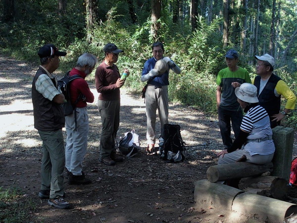 期日 2016年10月20日(木) 昔むかし、「むかで退治」の伝説の武将、俵藤太こと藤原秀郷の居城址で、、今は唐沢山神社となっている唐沢山から諏訪岳までのコース。G2という、格付けに魅せられて?参加する。集合の東武佐野線の田沼駅からタクシー2台に分乗しまずは唐沢山神社を歩く。本丸址や馬場址、枡形や石垣、から堀などよく残っており興味深く見学。物見櫓址と言われる天狗岩からは眼下に田沼の町並みが見下ろせ、城を構えるには良い場所であったことも頷ける。そこから足をのばし、京路戸山、京路戸峠をこえて、リーダーが「ここの登りだけは、G4だよ」という急登を制して!諏訪岳山頂でゆっくりと昼食。京路戸峠で待機の仲間2人と合流。帰路、駅へと向かう途中、川縁の大きな銀杏の木の下のたくさんのギンナンもゲットして(欲しい人だけ!)多田駅14:01の電車に無事乗車。下山行ではもちろん、冷たいビールの乾杯が待っていた。 (T記) |
