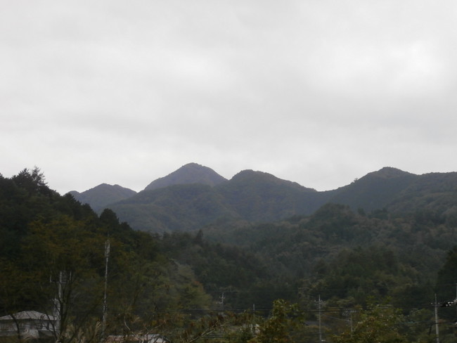 国道から鶴ヶ鳥屋山(写真中央奥の山)