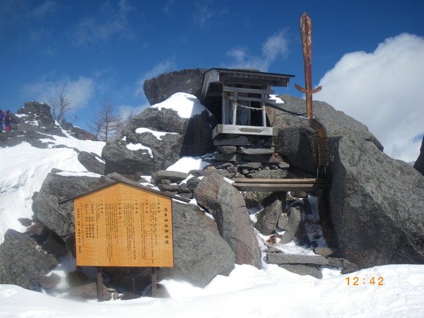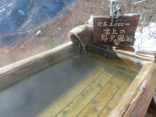 謝と安全を祈願する。下山後は秘湯、高峰温泉風呂で2000mの景色にゆったり。