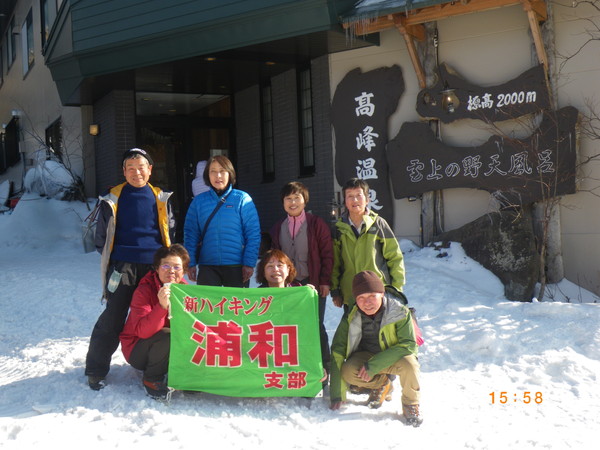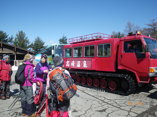しい白銀の世界、すぐ高峰温泉旅館迎えの雪上車で旅館に到着。たっぷり時間