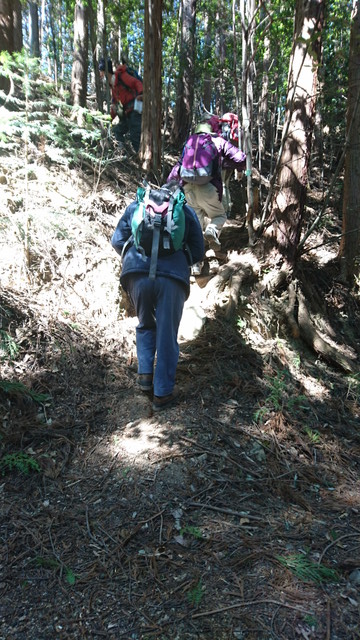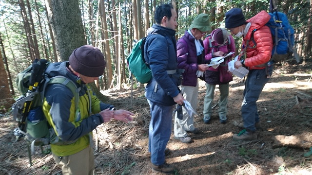 歩きはじめてすぐ登り口の八王寺屋根取付入口は上手に地形図が読めなければ絶対に見落としそうで出発前のリーダーの地形図読みブリーフィングの妥当性を感じいった。