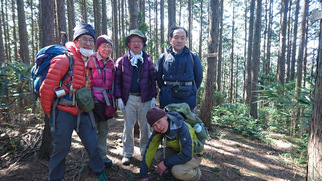 登り始めからの直登?。きつい。でもその途中で地図読み、コンパスの使い方、地形の認識、尾根の選び方などを懇切丁寧に教わる。今まで何も深く考えずリーダーの跡を黙々をついて行き、眺望に感激、フィトチトンいっぱいの森林浴で満足だった私の山歩きにとっては目から鱗。地形図から地形を予測し現地で照合し、コンパスにて確認する山歩き。全く知らなかった山の楽しみ方でした。順調に踏し、予定通り子の権現に到着。我が足に感謝とこれからの健脚を祈り次は浅見茶屋の手打ち鍋焼きうどん目指して最後の詰めにかかる。茶屋についてみると残念ながら鍋焼きうどんは売りきれていたものの竹の器に入った美味しい美味しい釜揚げうどんとビールで乾杯。地図読み初心者はリーダーから初回は修了という評価をいただき大満足。初めてのバリエーションコースにチャレンジして本当に楽しかった。周到な準備と懇切丁寧な説明ありがとうございました。浦和ハイキングではリーダーデビュウとのことですが知識と経験と力量、それになんといっても若さに感激。これからも是非このような山行の実行をお願いいたします。リーダーありがとうございました。