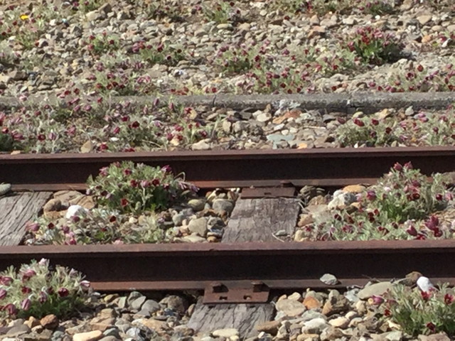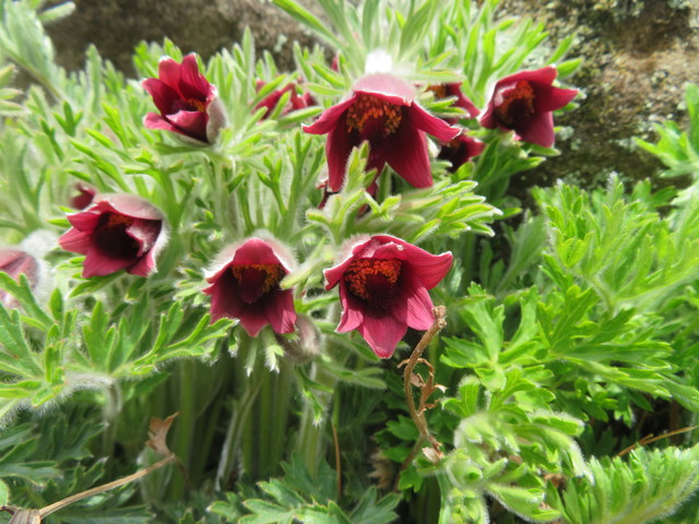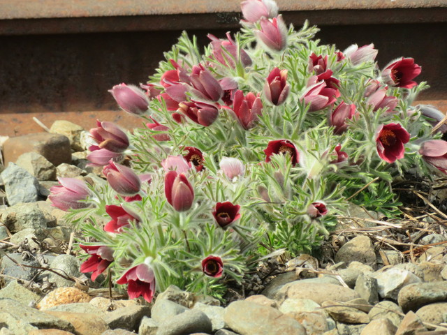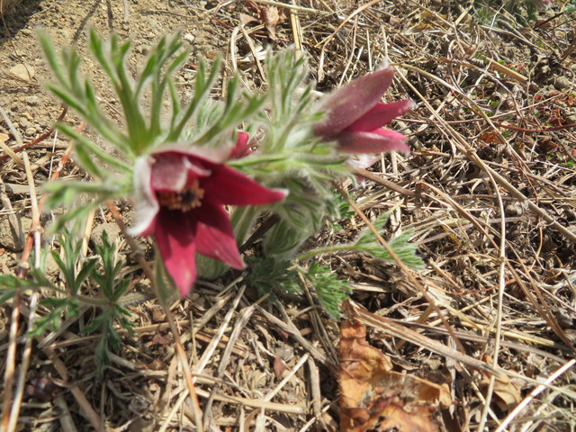 青い山並み。上信越自動車道の赤い高架の上には小さな車が行ったり来たり。平らで広い畑の中をたった二両の小さな電車がコトコト走り、まるでジオラマの中のように美しい。九連峰のほうは320m級ながら9つのピークがありそれぞれに9分の3、4と立札がある。ジオラマを眺めながらの昼食後、吾妻山の近くにロープが張ってあり「絶滅危惧種の翁草」が数株大事に保護されていたのを写真に収める。下山後リーダーの発案で南蛇井駅まで足を延ばすとそこは翁草の花盛り。単線の線路越しに愛でて神農原駅に戻り解散宣言後にリーダーからのアディショナル見学ということで全員で高崎市立美術館による。 |