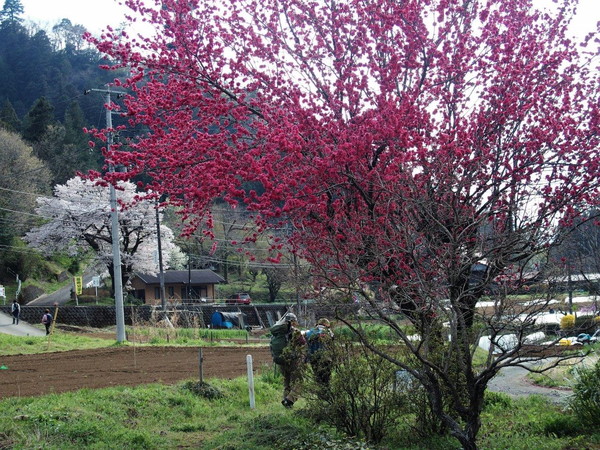 花モモや桜の、長閑な里道を行く