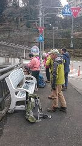 新山王橋バス停は、以前は、棡原中学校と言って居ましたが、廃校に成ったと同時に名前も変更に成ったようです。新山王橋で身支度を整えて車道を歩き始めました。ガードレールの外側にフキノトウが見えます。いくつか積みながらあるきました。春のいい香りです。車道と別れて急なアスファルトの道を進みます。人家があります。陽当たりは良さそうだけれど年取ったら大変そう。アスファルト道からゴロゴロ石の登山道に変わり小さな小川を渡り、尾根に取りつきます。暫くは、穏やかな登山道でしたが、峠に近づくに連れて道はジグザグに変わり何回も折り返して峠に到着。ここで5分程の休憩で出発でしたが、体調不良者が出たので、リーダーと参加者で協議の結果、大事を取ってここで下山することに成りタクシーで駅まで戻り解散に成りました。 (O)